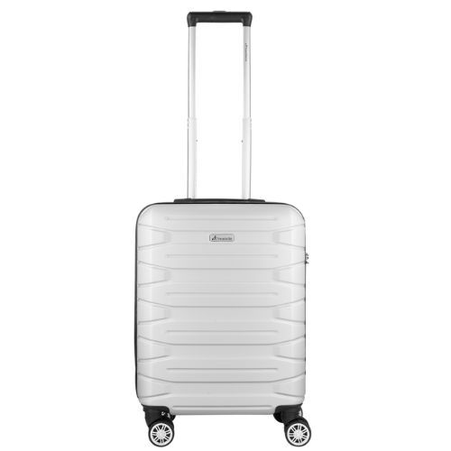 The Travelwize Cabana ABS 4-Wheel Spinner Hardside Luggage in platinum offers durable construction in 55, 65, and 75 cm sizes. Designed with a molded ABS shell, it includes an extendable aluminum and iron trolley handle, a fully lined interior with padded 210D polyester, interior zip pockets, and four double spinner wheels for smooth maneuvering. Security features include lockable zips and a combination lock.