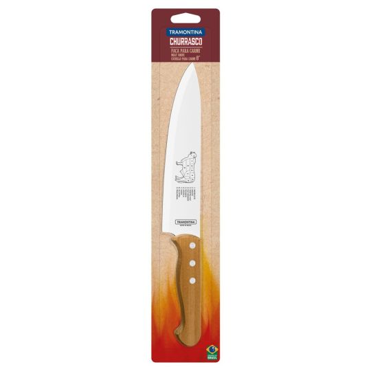 Tramontina Churrasco Meat Knife with Stainless Steel Blades and 8-Inch Natural Wood Handle, serving your guests will be even more practical and tasty. With a stainless steel blade, it guarantees greater durability of the cutting edge due to the heat treatment. In addition, the natural wood handle gives a sophisticated touch when serving. Your barbecue will be a success with this stylish knife!