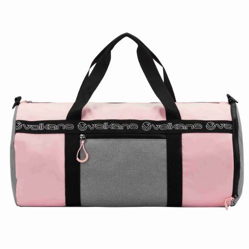 A Duffle Bag designed for women that is stylish and comes in a pink and grey colorway, making it easy to spot in crowded areas. Its spacious capacity, durable construction, and multiple pockets make it a great option for a variety of activities, including travel, gym, and outdoor activities.