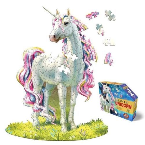 Enter a world of fantasy and fun with the I AM LIL' UNICORN 100-piece jigsaw puzzle by Madd Capp! Designed for young dreamers and puzzle enthusiasts, this uniquely shaped puzzle forms a beautiful unicorn once completed, creating a visually enchanting and delightful experience.