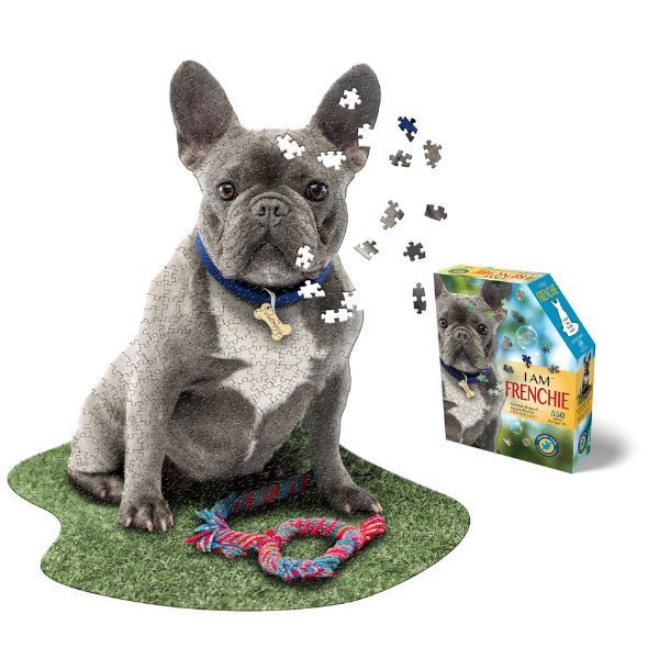 Get ready for some adorable puzzle time with the I AM FRENCHIE 550-piece jigsaw puzzle by Madd Capp! Designed for dog lovers and puzzle enthusiasts alike, this uniquely shaped puzzle forms a delightful French Bulldog once completed, creating a visually charming and engaging experience.