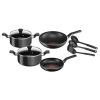 Non-stick interior- Superior non-stick interior coating reinforced with titanium particles. Thermo-spot solid red to show when pans are properly preheated to start cooking. Ergonomic handles: dsigned for a comfortable grip. Pouring edges; for added convenience.